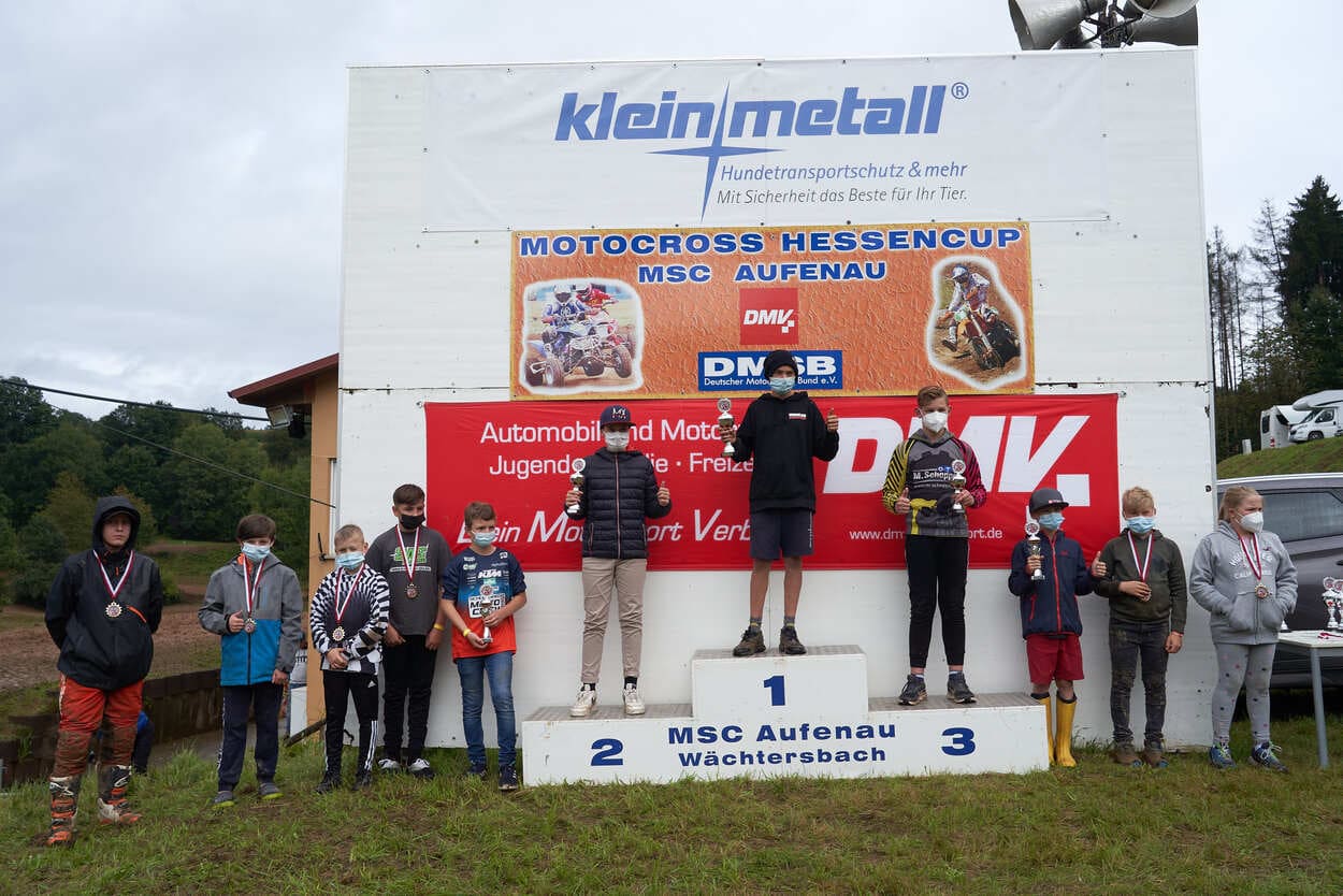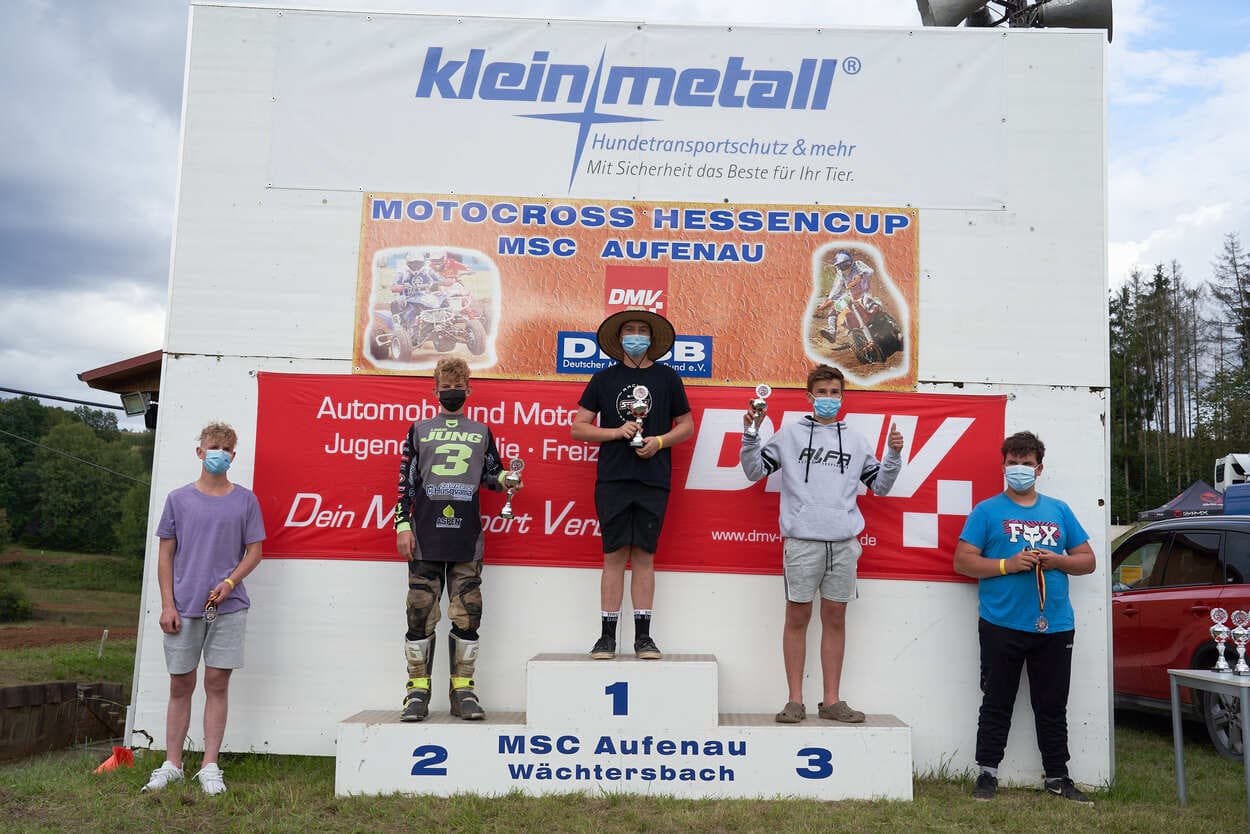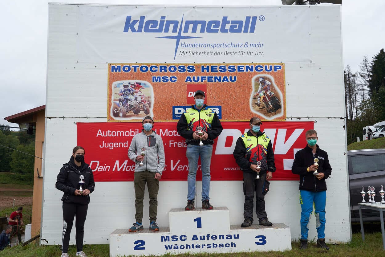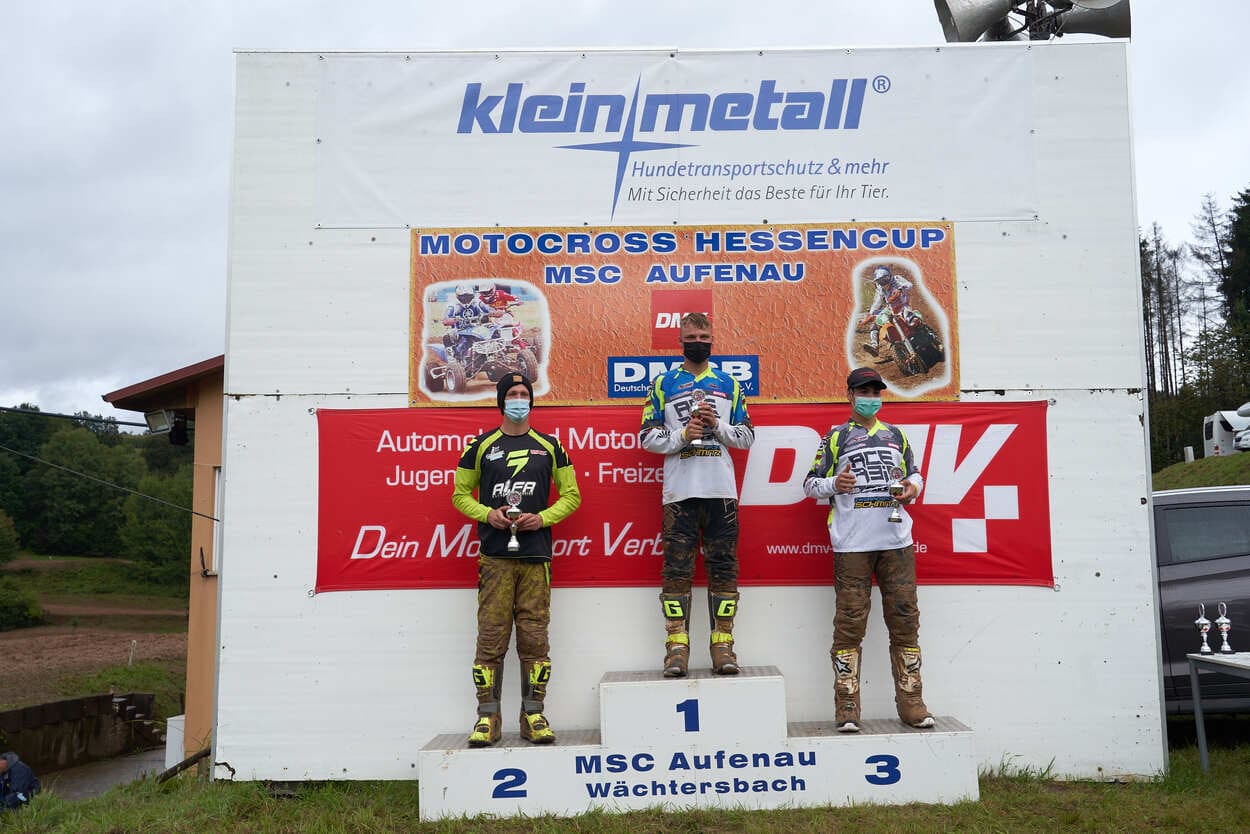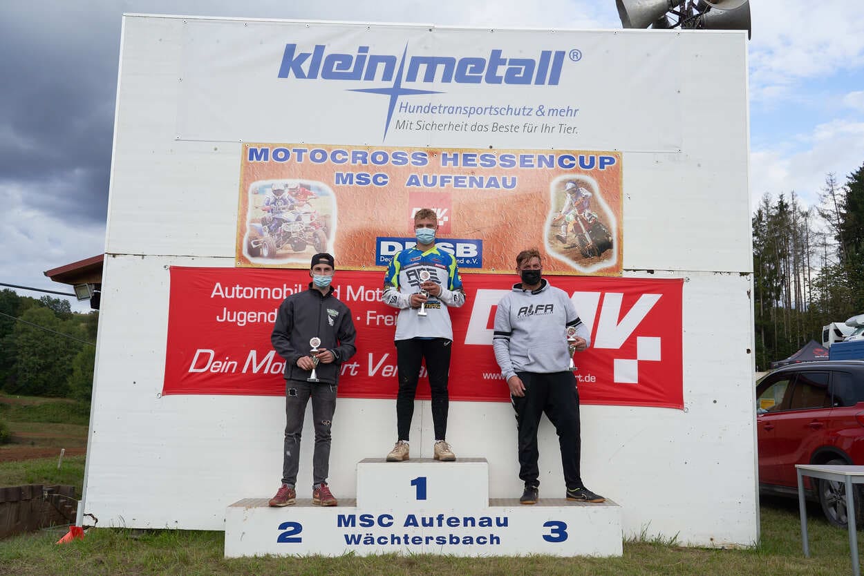 Marlon Pfeifer vom MSC Aufenau, gleichzeitig jüngster Fahrer des Feldes, belegte Rang 4, Sieger wurde Ralf Scharnbach. In der schnellen MX1 Klasse mit Motorrädern bis 450 ccm holte sich Nico Müller vom AMC Frankenthal den Tagessieg, in MX2 bis 250 ccm war, wie am Vortag, wieder Phil Niklas Löb der Schnellste. In der 85 ccm Klasse stand Aaron Kowatsch ganz oben auf dem Treppchen. Detaillierte Ergebnisse aller Rennklassen sind unter www.mx-hessencup.de zu finden.