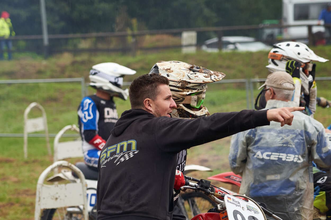 Nach starken Regenfällen in der Nacht startete der Rennsonntag verzögert: Auf die freien Trainings wurde verzichtet, sodass es für die Fahrer erst ab zehn Uhr zu den Qualifikationstrainings auf die Strecke ging. Hier waren mindestens zwei bis drei Runden zu absolvieren, um ordnungsgemäß bei den Wertungsläufen am Nachmittag an den Start gehen zu können. Den Anfang machten die Classic, Twinshock und Evo Fahrer – Lokalmatador Rick Baumgart holte sich Rang 1 auf seiner Honda. Mit diesem Ergebnis sammelte er 50 Meisterschaftspunkte.