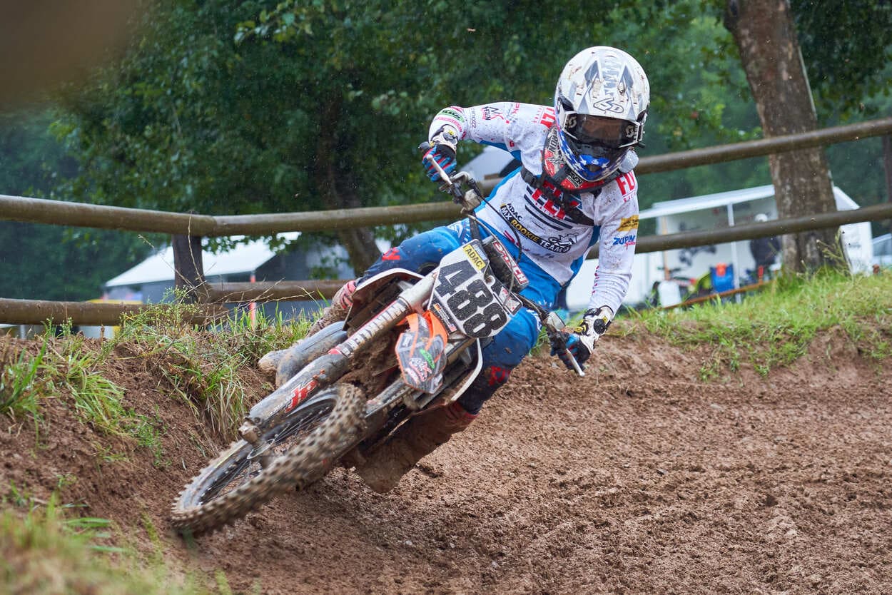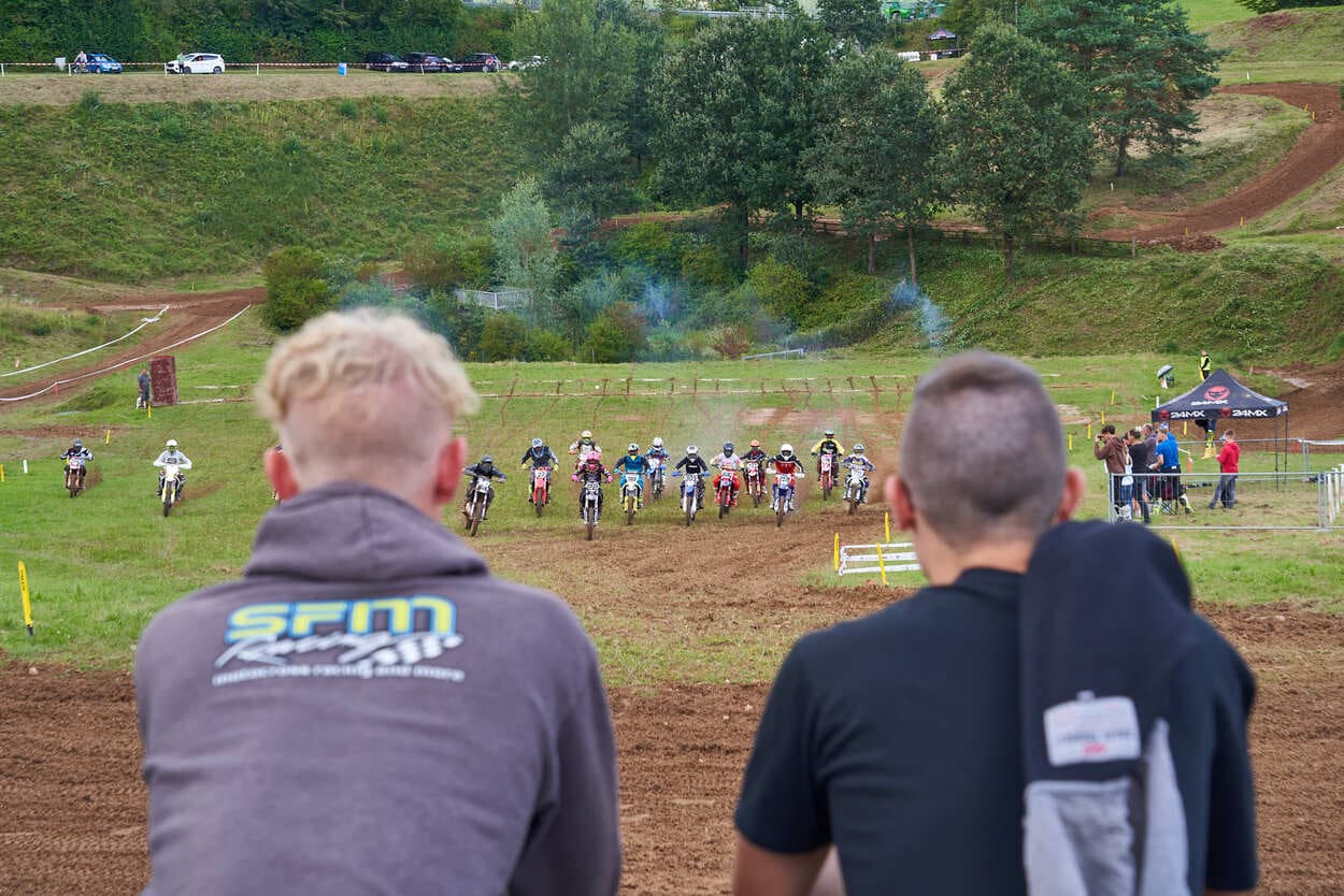 Bei diesigem Wetter und nasser Strecke waren die morgendlichen freien Trainings am Rennsamstag eine besondere Herausforderung: Insbesondere für die Kids auf ihren kleinen 50 und 65 ccm Motorrädern. Bei hervorragenden Streckenbedingungen konnten dann ab Mittag die Wertungsläufe stattfinden: Im gemischten Rennlauf aus MX2 Jugend und Gastfahrerklasse waren die beiden Aufenauer Daniel Schäffer und Lukas Schmidt flott unterwegs: Daniel Schäffer konnte trotz Handverletzung in beiden Rennläufen den Start für sich entscheiden und landete jeweils auf Rang 2 des Feldes hinter Phil Niklas Löb vom MSC Sechshelden.
