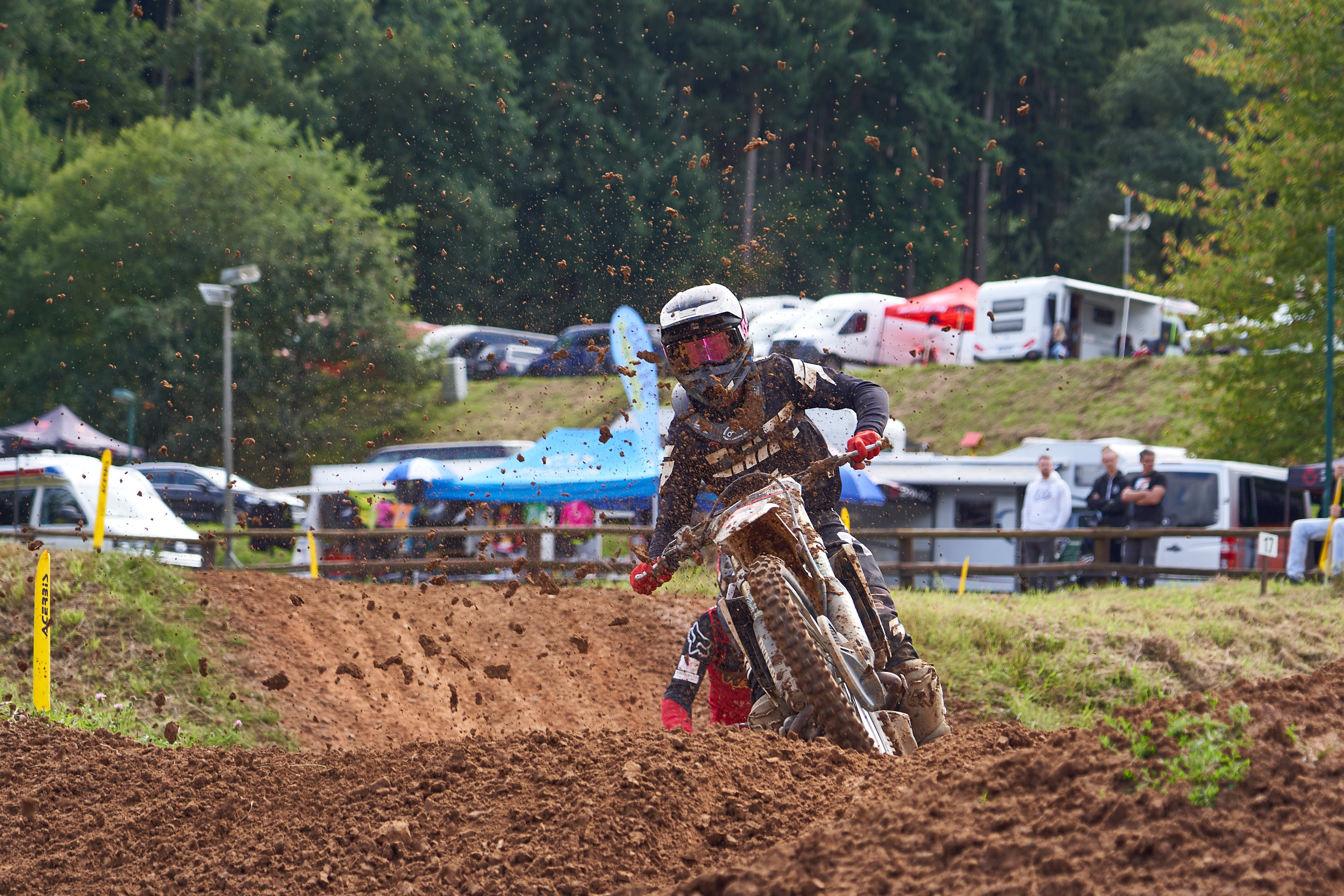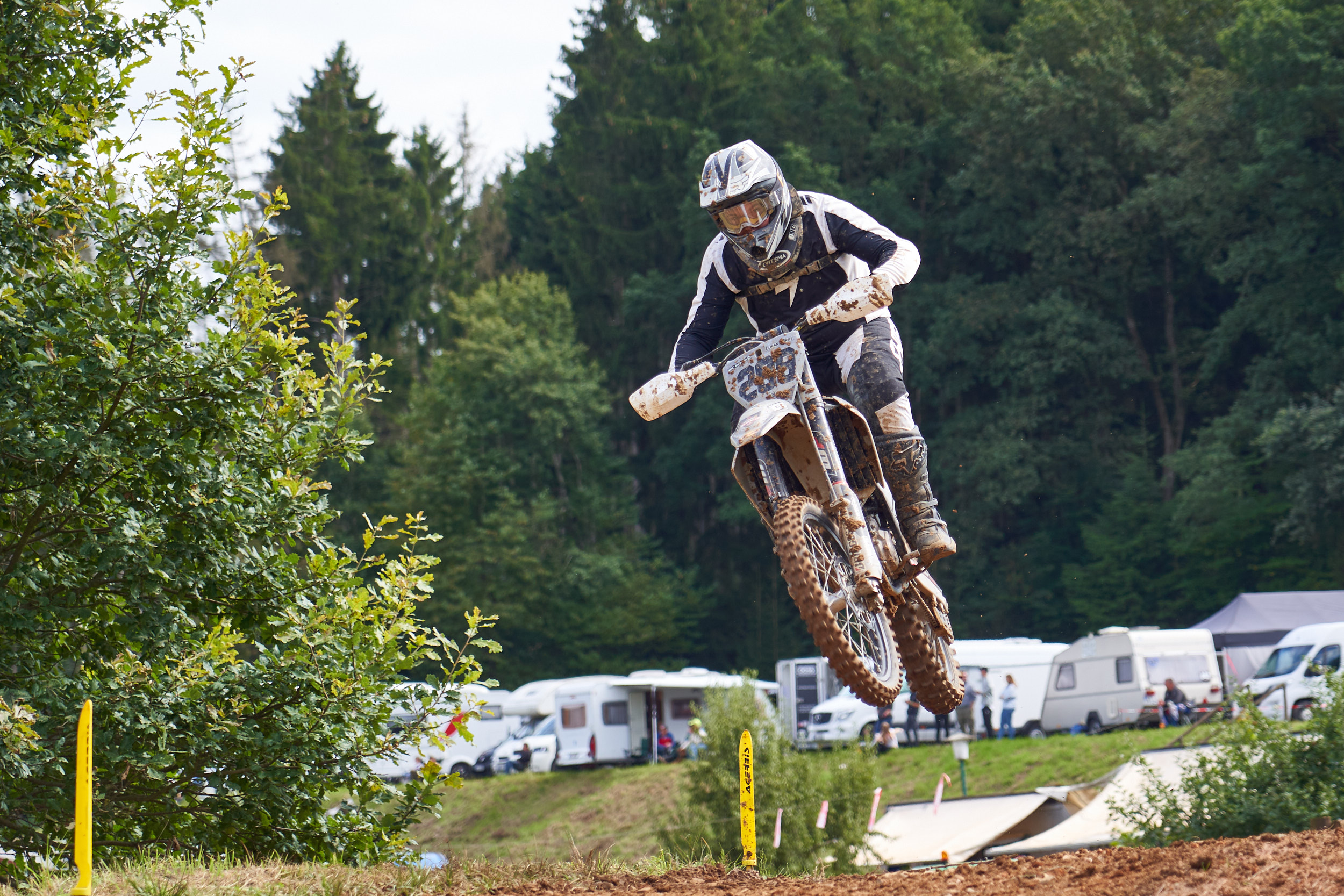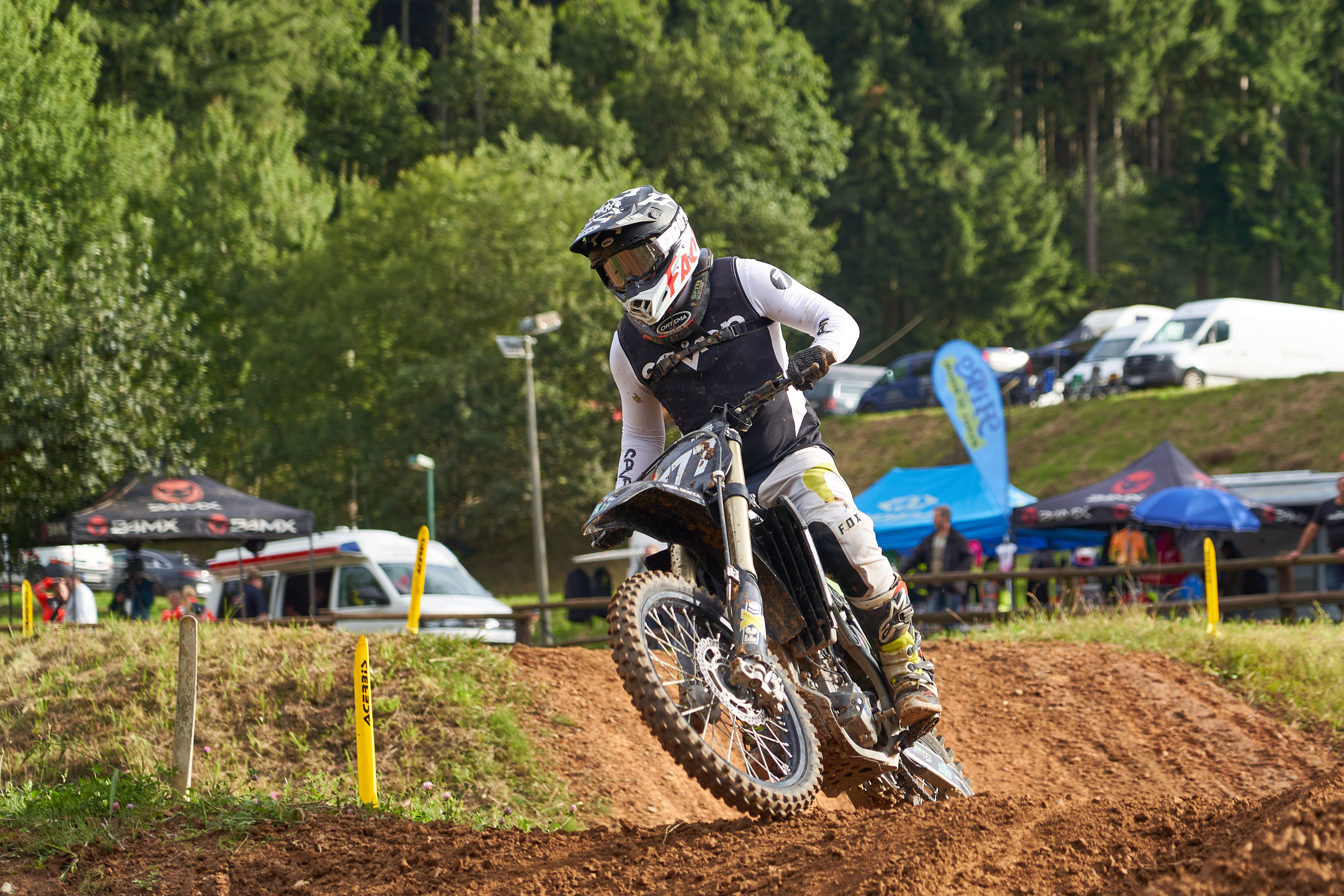 Lukas Schmidt konnte sich unter den eingeschriebenen Fahrern der MX2 Jugend Klasse mit einem vierten Rang im ersten Lauf und einem achten Rang im zweiten Lauf wichtige Meisterschaftspunkte sichern. Lukas Brill belegte insgesamt Rang 12. Weitestgehend unproblematisch verlief schließlich der gesamte Rennsamstag mit je zwei Wertungsläufen pro Rennklasse, sodass der Zeitplan locker eingehalten werden und pünktlich um 18:15 Uhr die Siegerehrung stattfinden konnten. Hier Stand Marek Schneider in der Hobbyklasse für den MSC Aufenau ganz oben auf dem Siegerpodest. Der KTM Pilot hatte die Möglichkeit genutzt, nach acht Jahren Pause wieder Motocross Rennluft zu schnuppern. Schnellste Dame des Tages war Britt Siemerink aus Haaksbergen, NL.
