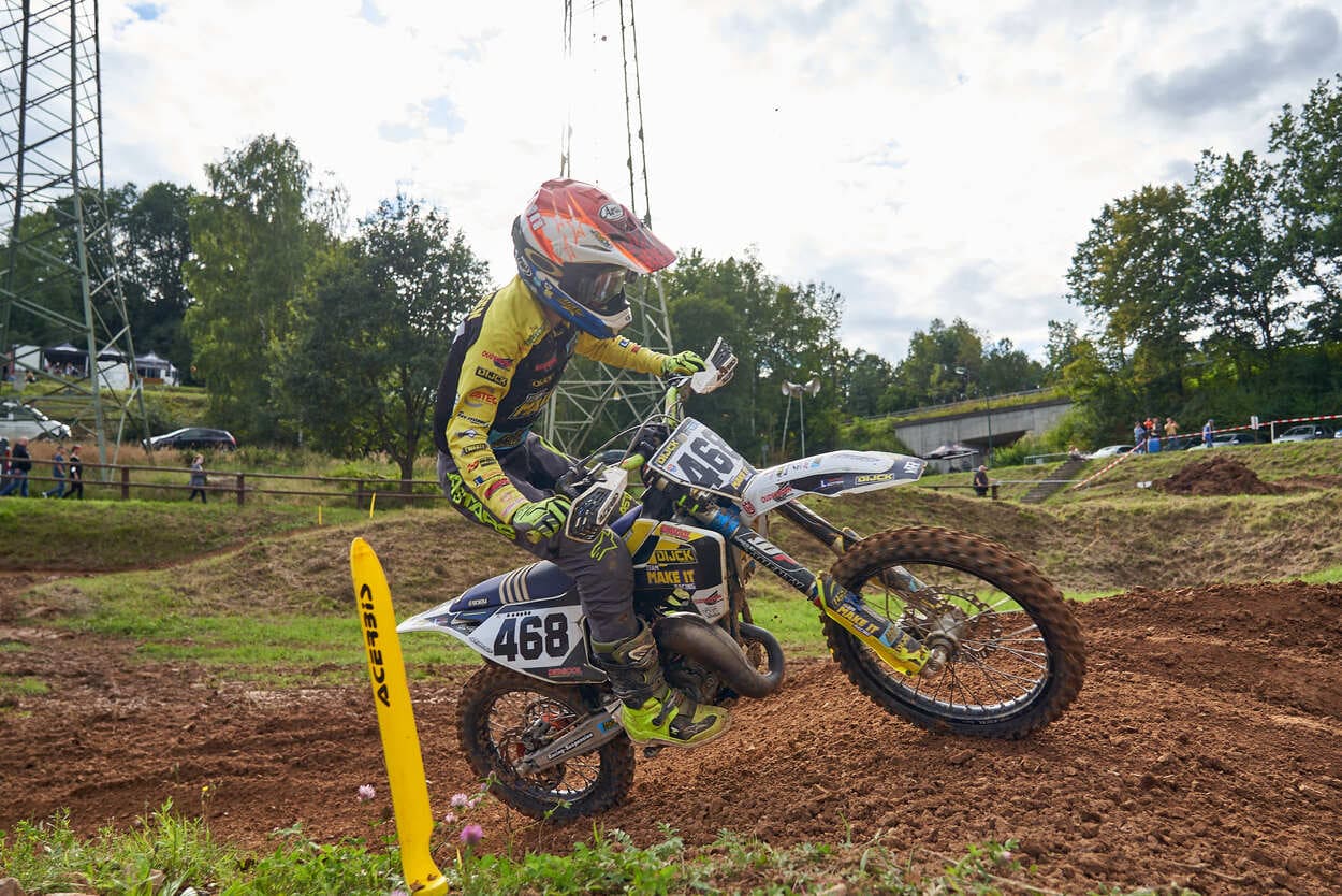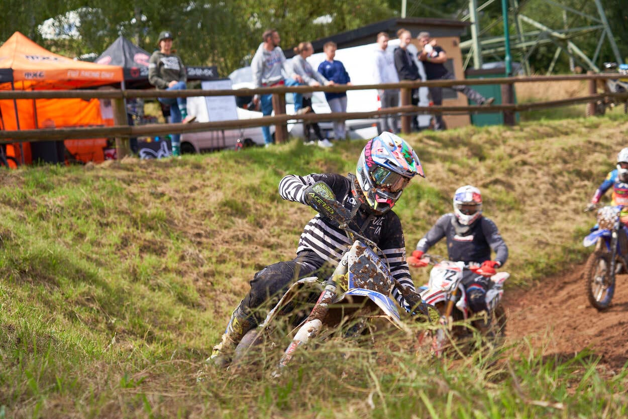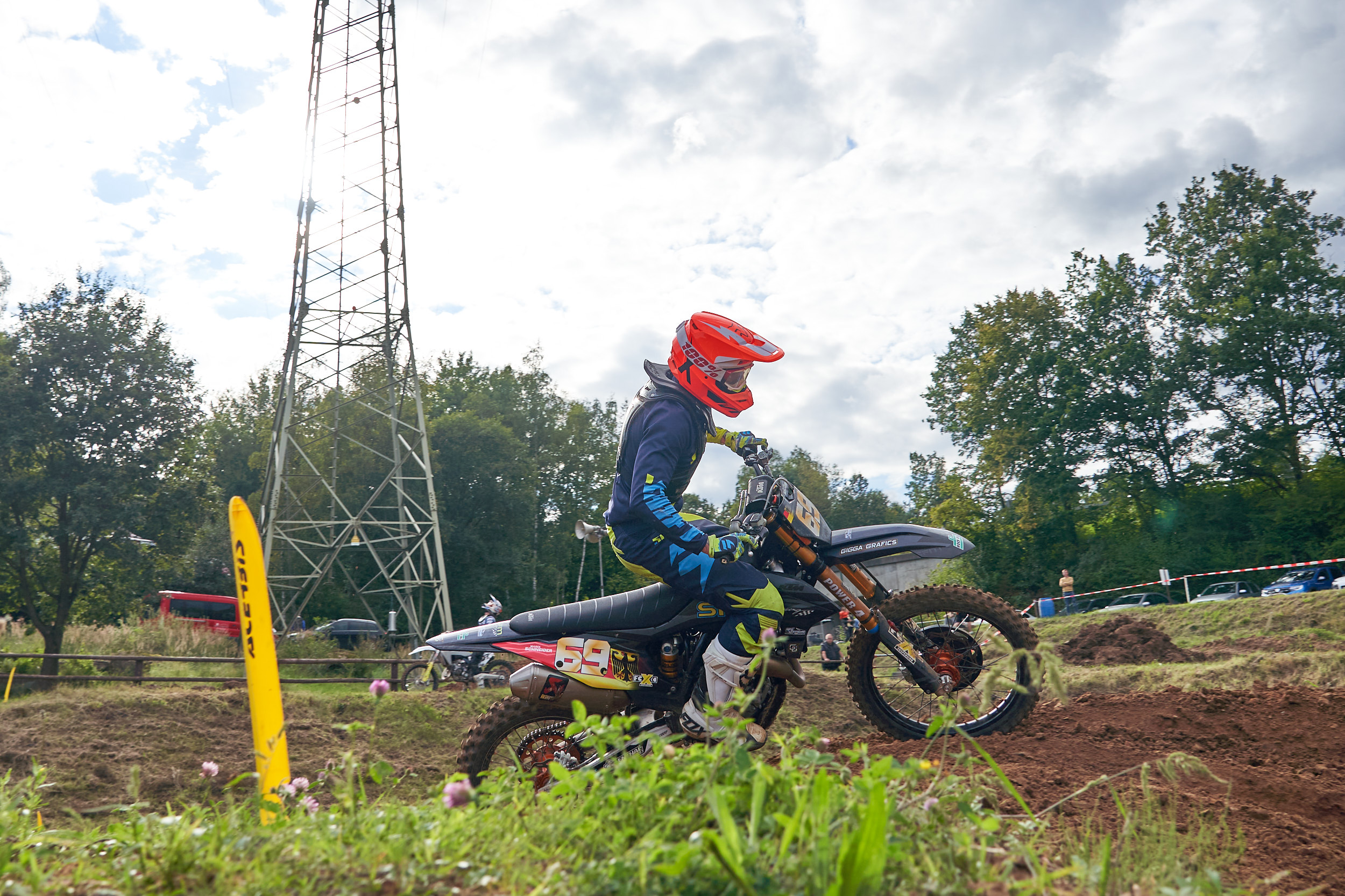 Lukas Schmidt konnte sich unter den eingeschriebenen Fahrern der MX2 Jugend Klasse mit einem vierten Rang im ersten Lauf und einem achten Rang im zweiten Lauf wichtige Meisterschaftspunkte sichern. Lukas Brill belegte insgesamt Rang 12. Weitestgehend unproblematisch verlief schließlich der gesamte Rennsamstag mit je zwei Wertungsläufen pro Rennklasse, sodass der Zeitplan locker eingehalten werden und pünktlich um 18:15 Uhr die Siegerehrung stattfinden konnten. Hier Stand Marek Schneider in der Hobbyklasse für den MSC Aufenau ganz oben auf dem Siegerpodest. Der KTM Pilot hatte die Möglichkeit genutzt, nach acht Jahren Pause wieder Motocross Rennluft zu schnuppern. Schnellste Dame des Tages war Britt Siemerink aus Haaksbergen, NL.